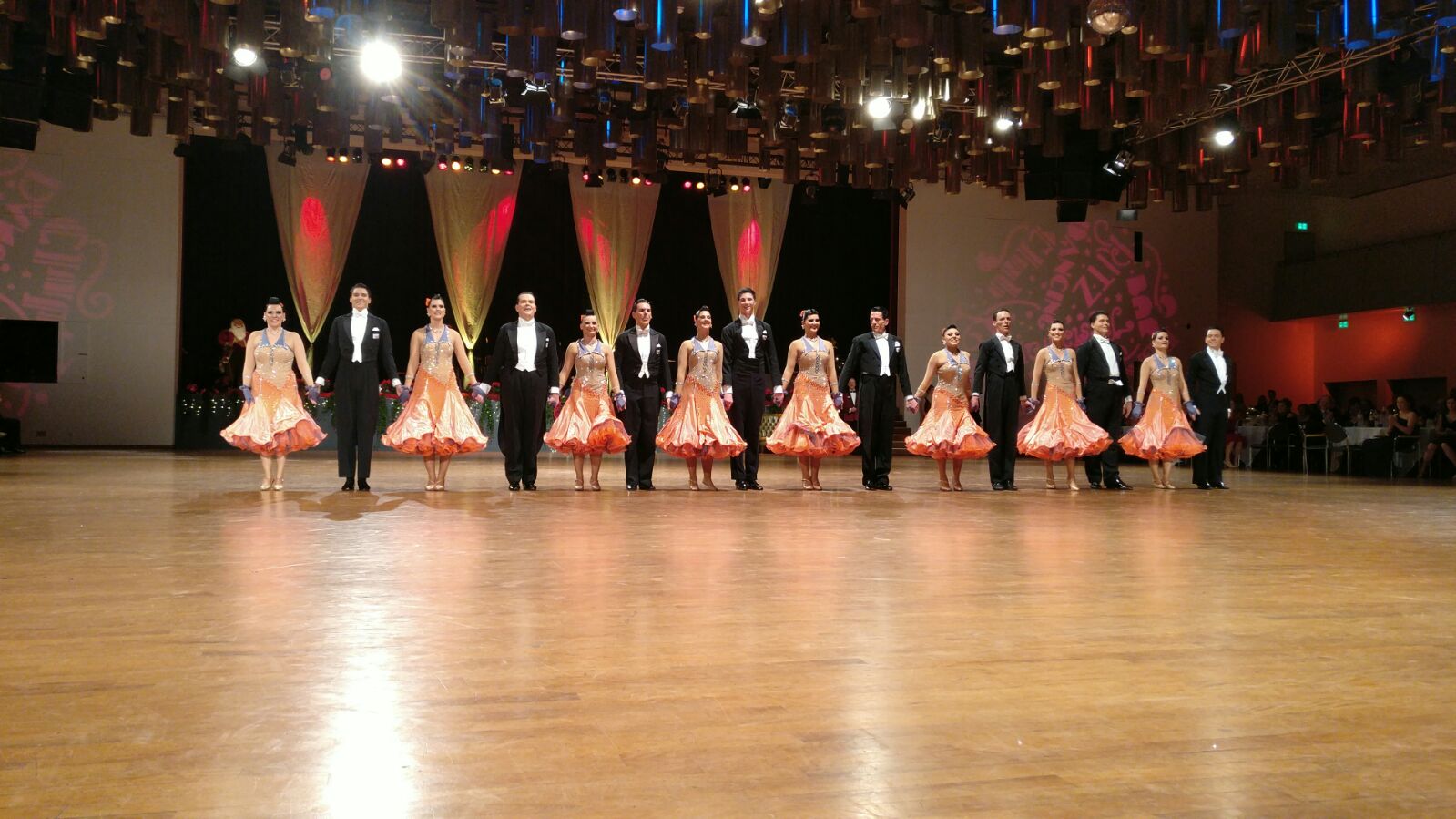Um 21 Uhr machte sich das Team schließlich fertig in Schale geworfen auf, den Höhepunkt des Abends zu bestreiten. Ein jubelnder Ballsaal begrüßte die Tänzer. Auch bekannte Gesichter aus dem Standard-B-Team und den Lateinformationen feuerten die Clubkameraden mit allen Kräften an und als die Musik erklang, die die Mannschaft schon seit Monaten im Training begleitet, war alle Angst vergessen und der Hebel zum Lächeln und Spaß haben wurde umgelegt.
