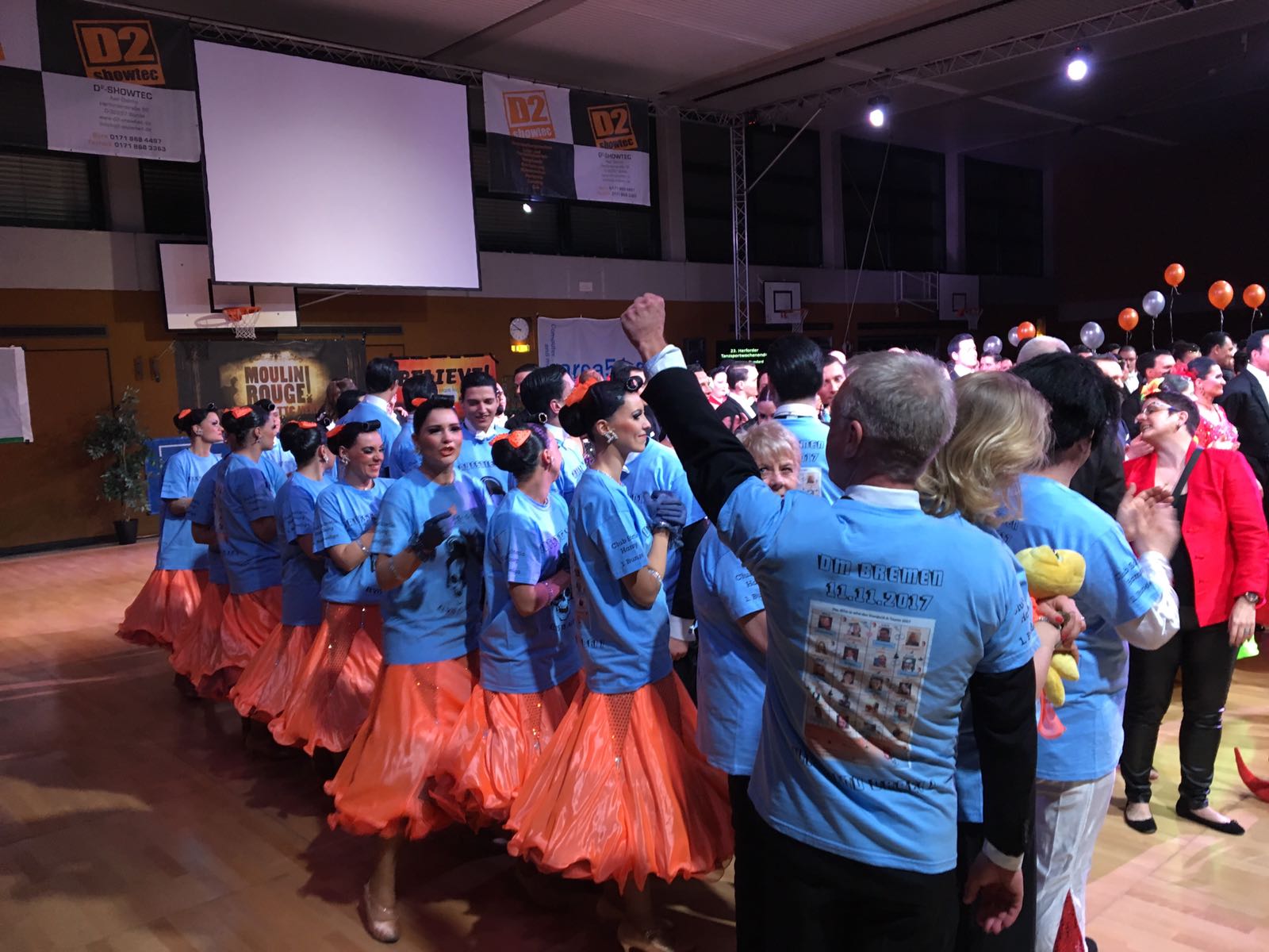 Zurück im Saal machte Hamburg nochmal Stimmung für die anderen Teams, jubelte und klatschte zu den Programmen der Ligamitstreiter, bevor sie als erste die Wertung für ihren Durchgang erhalten sollten. Kurz vorm Herzstillstand erhoben sich endlich die Arme der fünf Wertungsrichter: 31611 und damit der klare Sieg, auch in Turnier drei, während Göttingen und Darmstadt noch einmal Plätze tauschten. Doch auch mit Platz zwei in dieser Runde konnte Darmstadt dem Göttinger Team den Mitaufstieg nicht mehr streitig machen. Ergebnis also: Aufstieg in die erste Bundesliga für Hamburg und Göttingen und damit auch Qualifikation zur Teilnahme an der Deutschen Meisterschaft am 11.11.2017 in Bremen.
