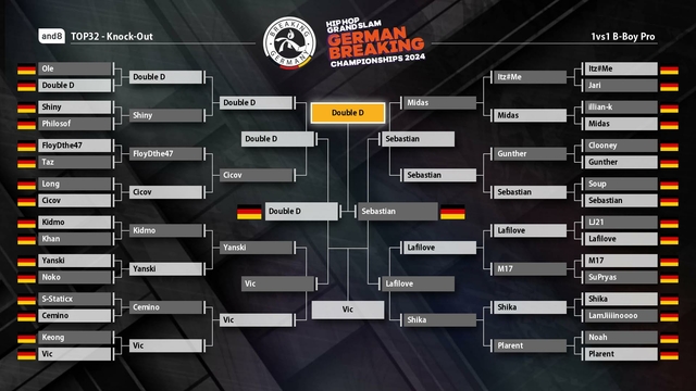 Bei den German Breaking Championships, die am 25. Mai 2024 auf dem Hamburger Heiligengeistfeld ausgetragen wurden, hat unser Breaking-Trainer Vic einen Riesenerfolg eingefahren: In einem starken Startfeld erreichte er die Gruppe der Top 4. Der Einzug ins finale Battle blieb Vic leider verwehrt, aber im Battle um Platz 3 konnte er die Jury von sich ein weiteres Mal überzeugen.
