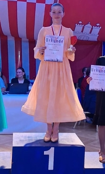 Bei den Junioren I D Standard starteten 6 Solistinnen. Hier belegte Milena den 3. Platz und konnte sich so den Titel Hamburger Landesmeisterin ertanzen.