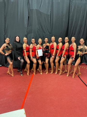 Bereits bei der Generalprobe am 31.01.2026 im Rahmen der Präsentation der Soloformationen, hatten die Tänzerinnen erste Erfahrungen vor Publikum mit der neuen Choreografie „Dracarys“ gesammelt. Einige von Ihnen tanzen erst ihre allererste Saison. In Verden entfachten sie nun vor Turnier-Publikum ihren kriegerischen Geist in den neuen Turnierkleidern und präsentierten ihre Choreografie mit starken Bildern – sowohl im ersten Durchgang als auch im kleinen Finale. Begleitet und unterstützt wurde das Team dabei vom stellvertretenden Trainer Daniel, der besonders den geschlossenen Teamauftritt und die Freude am Tanzen in den Mittelpunkt stellte. Am Ende belegte das B-Team einen 8. Platz und sammelte wertvolle Erfahrungen für die kommenden Turniere.