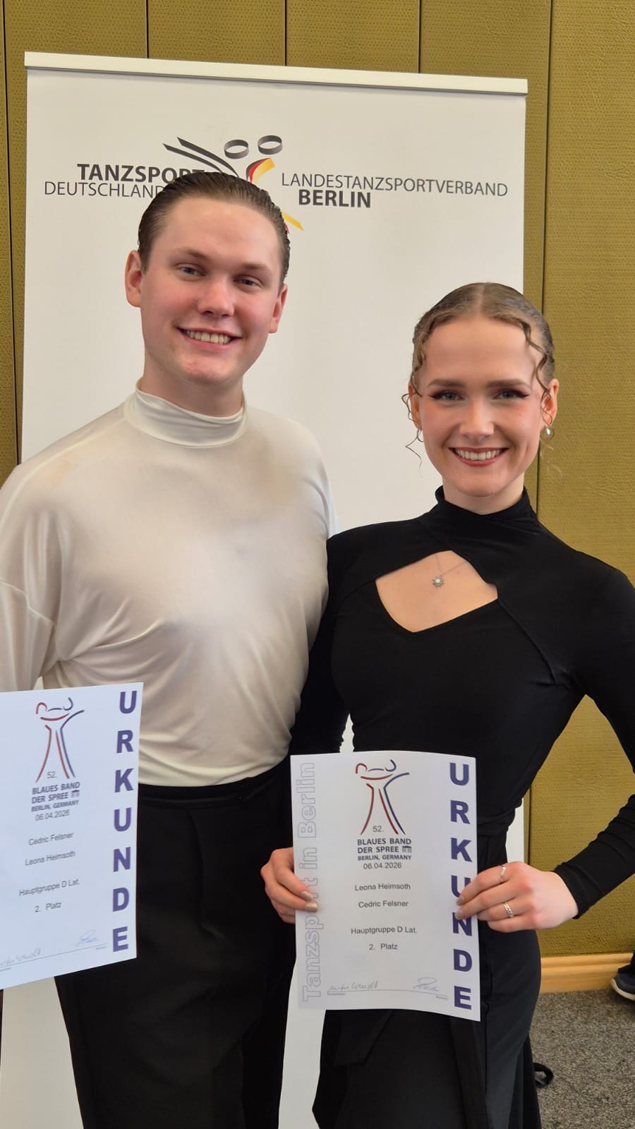 Parallel starteten Kevin Schilling/Michelle Jäckstein in der Hauptgruppe II A Latein in einem leider stark dezimierten Feld von nur sieben Paaren. In der Vorrunde konnten sie sich heute eindeutig fürs Finale qualifizieren und landeten auf einem 6. Platz. Im Anschluss ging es in der Hauptgruppe A Latein mit 31 Paaren weiter - für Kevin und Michelle somit ins achte und letzte Turnier des Blauen Bandes der Spree 2026. Auch hier wurde noch ein letztes Mal alles gegeben. Mit einem 30. Platz im Gepäck ging es im Anschluss nach vier ereignisreichen Tagen zurück nach Hamburg.